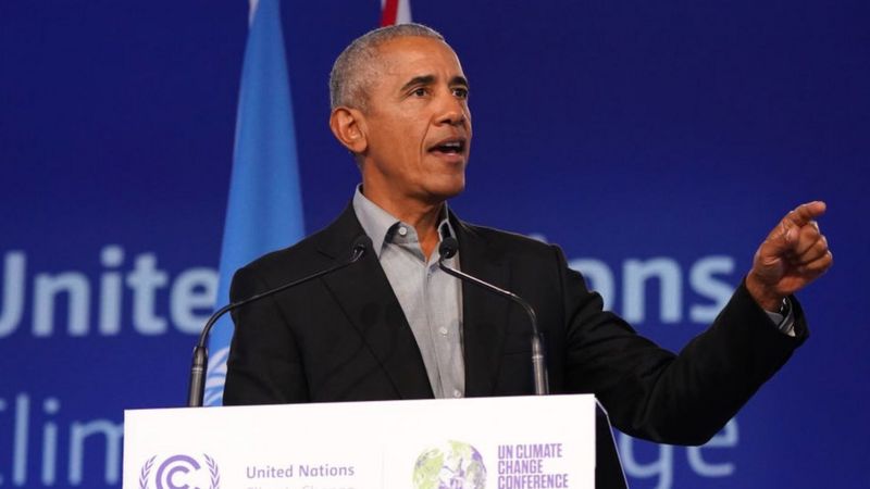 Barack Obama, Glasgow’da süren BM İklim Zirvesi’nde yaptığı konuşmada “Dünyanın en fazla sera gazı emisyonu yayan ülkelerin ikisi olan Çin ve Rusya’nın liderlerinin görüşmelere katılmayı bile reddettiğini görmek cesaret kırıcıydı” dedi. Ülkesindeki Cumhuriyetçi Kongre üyelerini de eleştiren Obama, “ABD’de konuşmamı dinleyenlere şunu söylememe izin verin: Florida’daki eviniz denizlerin yükselmesiyle su altında kalıyorsa veya Dakota’da tarladaki ekinleriniz çürüyorsa veya California’daki eviniz yanıyorsa, Cumhuriyetçi veya Demokrat olmanızın bir önemi yok. Doğa, fizik, bilim, parti üyeliğini umursamıyor” dedi.