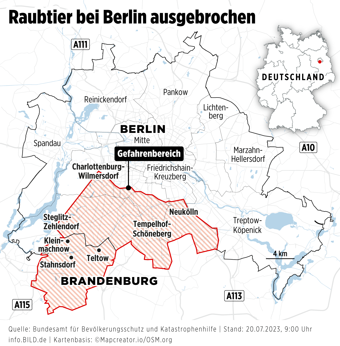Brandenburg Polisi açıklamasında, “Acil durum nedeniyle, polis hızlı bir şekilde vahşi hayvanın aranması ve halkın korunması için kapsamlı önlemler aldı. Gece saatlerinde, Brandenburg Polisi’ne bağlı 30’dan fazla devriye aracı görevlendirildi. Ayrıca, Berlin ve Brandenburg polis helikopterleri ile Berlin Polisi’nin operasyon ekibi de dahil edildi. Gece boyunca, polis tarafından hayvan hekimleri, avcılar ve veterinerler çağrılarak, polis operasyonuna uzmanlıkla destek verildi” denilirken, gün boyunca ekibe takviye kuvvet gönderildiği belirtildi.
