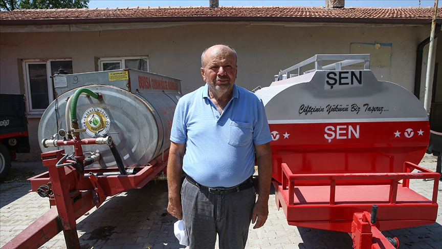 Bursa’da, Harmancık’taki orman yangınına tek lastiği patlayan tankerle su taşıyan çiftçi Ramazan Doğru hediye edilen üç su tankerinden ikisini yangınlarda kullanılmak üzere mahalleye bağışladı.