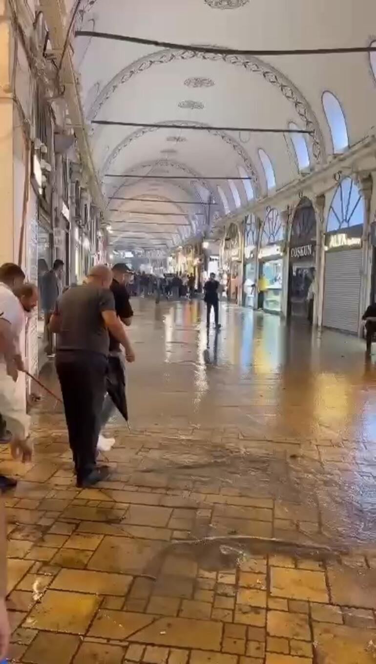 Kapalıçarşı’daki su baskını hem alışveriş yapanlara hem de esnafa zor anlar yaşattı.