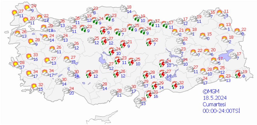 MGM’nin 18 Mayıs tarihli hava durumu raporu.