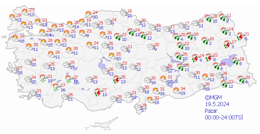 MGM’nin 19 Mayıs tarihli hava durumu raporu.