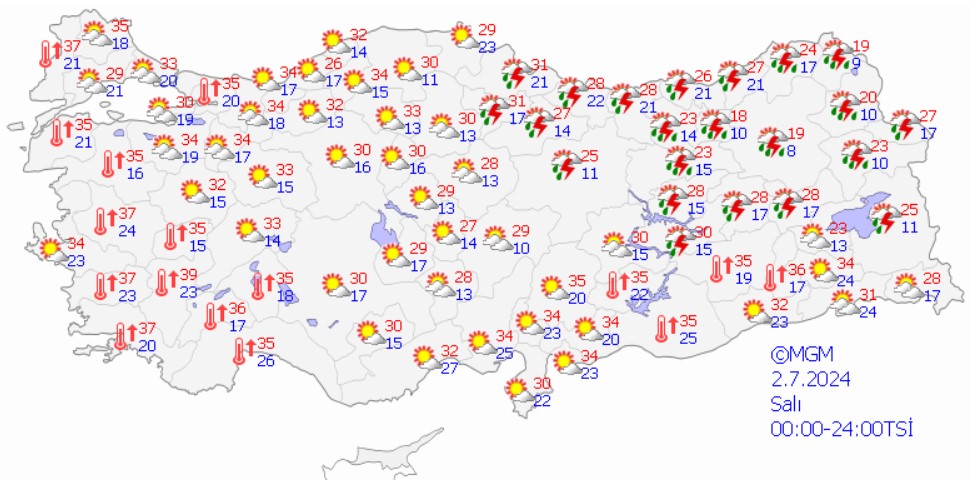 MGM’nin 2 Temmuz Salı günü hava durumu raporu.