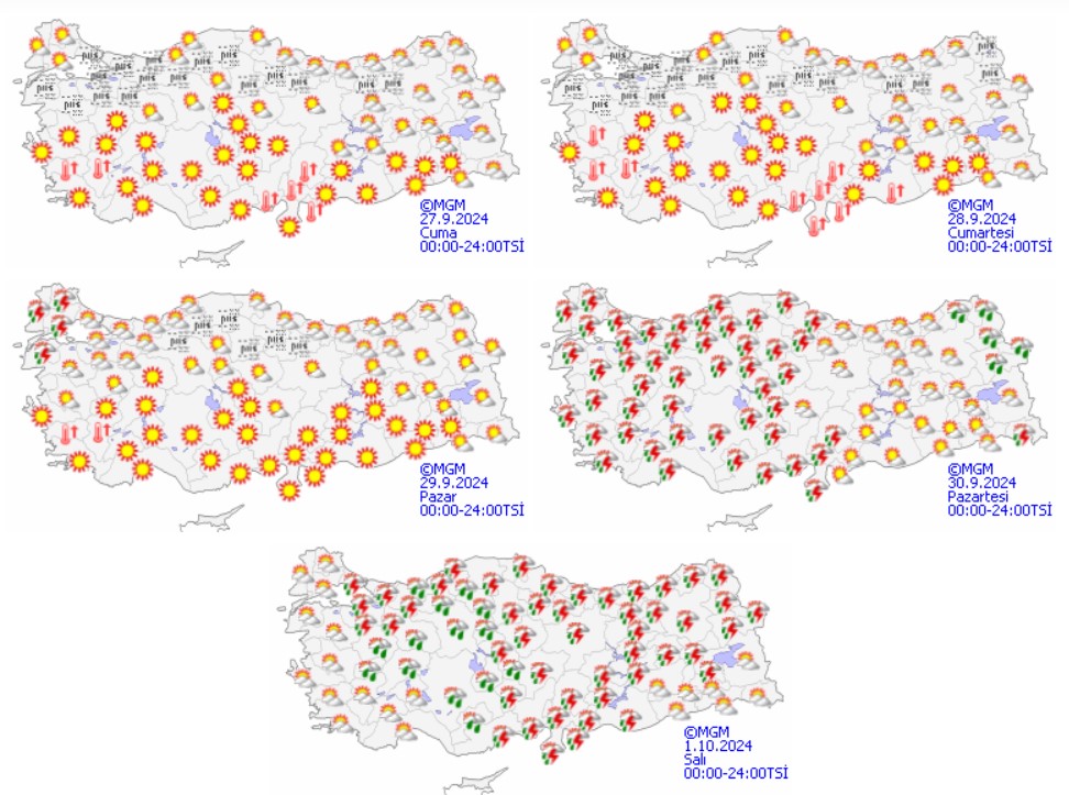 MGM’nin beş günlük hava durumu raporu.