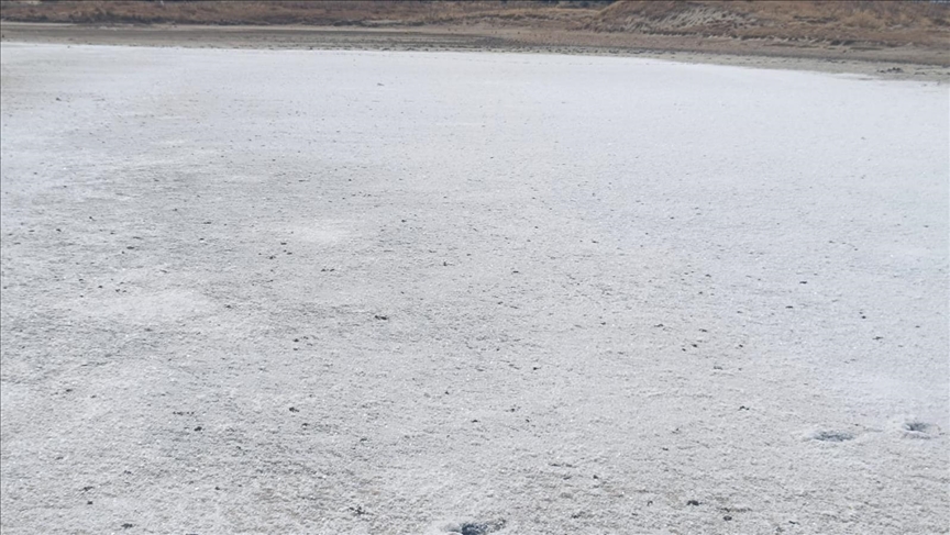 İlçenin çıkışındaki Trapez mevkisinde bulunan göldeki su, aşırı sıcaklar nedeniyle çekilince ortaya tuzla kaplı bir alan ortaya çıktı.