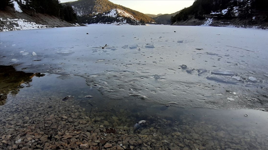 Bolu’nun Göynük ilçesinde bulunan Sünnet Gölü Tabiat Parkı’nda yaşanan balık ölümlerinin nedeni araştırılıyor. Havaların ısınması ve gölün yüzeyindeki buzların erimeye başlamasıyla kıyıda çok sayıda balığın öldüğü görüldü. Bazıları buzların arasında kalan balıkların ölüm sebebinin belirlenmesi için İlçe Tarım ve Orman Müdürlüğü ekiplerince gölden numune alındı.
