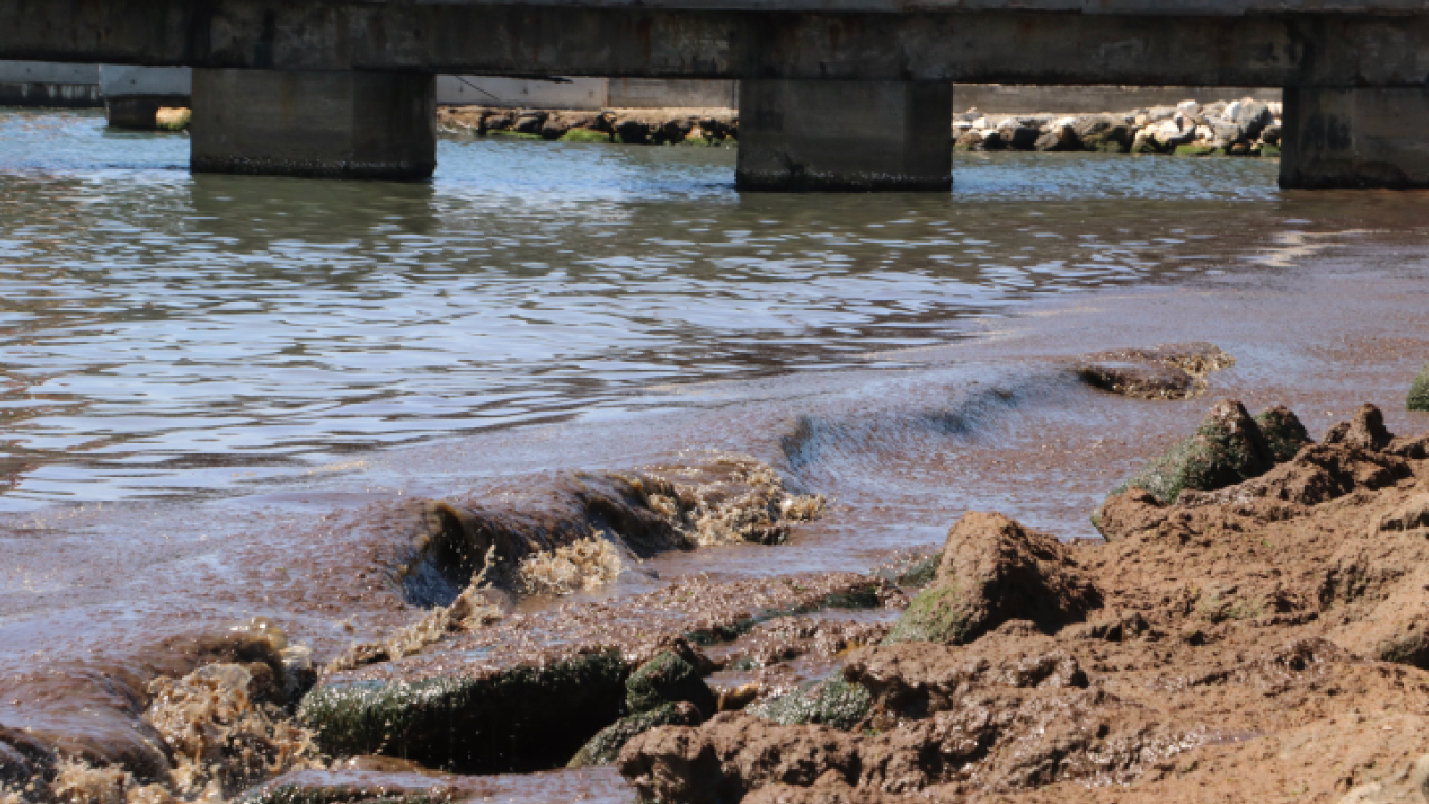 Tekirdağ’da kuvvetli rüzgar nedeniyle sahilin bir kısmı kırmızı yosunla kaplandı.