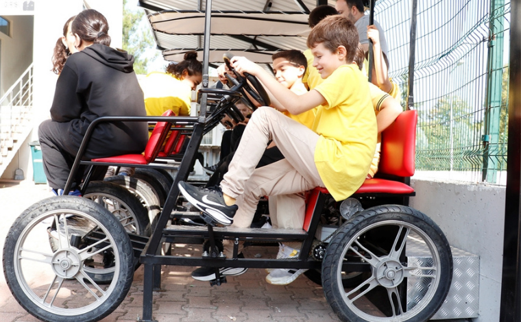 Öztürk projenin yaklaşık bir ay önce başladığını, bahçeye üç çift direksiyonlu bisiklet koyduklarını söylüyor: “Öğrencilerin daha çok ilgisini çeksin diye bisikletlere direksiyon ekleyip otomobil şeklinde tasarladık. Başiskele’de elektrikli bisiklet üreten firmayla çalıştık. Yazılımlarını, çizimlerini biz yaptık, onlara verdik. Onlar da bisikletleri üretti. Her bisiklette program var. Öğrenciler ne kadar enerji üretildiğini görebiliyor ayrıca sınıf bazında da yarışmalar yapıyoruz. En çok enerji üreten sınıfa çeşitli ödüller veriyoruz. Bu şekilde öğrencileri bisikletleri kullanmaya ve spor yapmaya teşvik ediyoruz.”