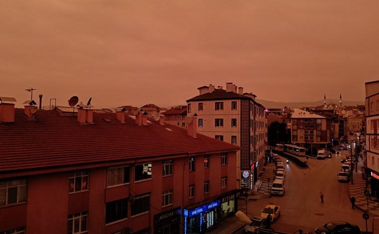 Dün Bolu’da etkili toz taşınımı nedeniyle akşam saatlerinde kentte gökyüzü kırmızı renge büründü. Gelen fotoğraflar ise kızıl gezegen Mars’ı hatırlattı.