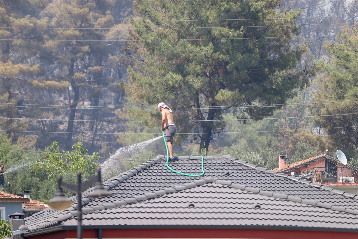Vatandaşlar evlerini ıslatarak yangından korunmaya çalıştı.