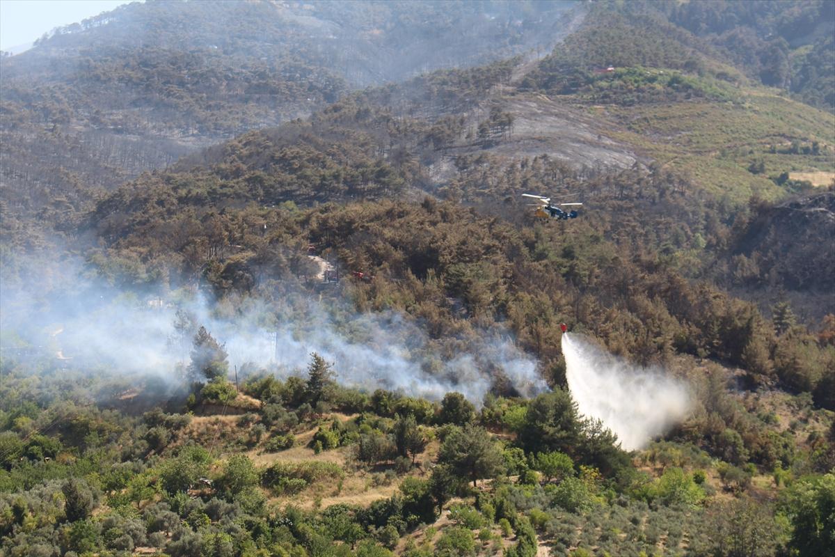Rüzgarın etkisini sürdürdüğü bölgede yangına 2 uçak, 11 helikopter, 64 arazöz, 10 iş makinesi ve 327 personel müdahalede bulunuldu.