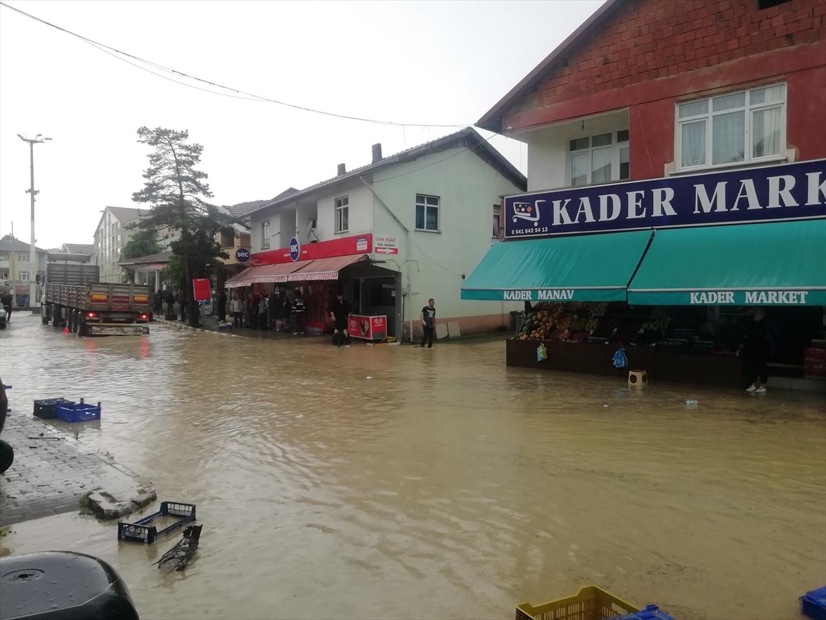 Bölgedeki bazı iş yerlerini de su bastı.