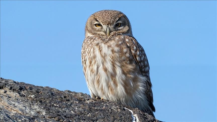 Alanda çalışma yapan Anadolu Ajansı ekibi doğal ortamındaki kayalıklara konan bir kukumavı görüntüledi.