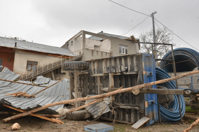Hala 6 Şubat merkezli depremlerin yaralarını sarmaya çalışan Kahramanmaraş ise dün başka bir felaketle boğuşuyordu. Elbistan’a bağlı Uncular Mahallesi’nin Akkaya mezrasını hortum vurdu. Hortumda 20’ye yakın ev ve ahırın çatısı uçtu. Kopan çatı parçaları, yüzlerce metre ötedeki kayısı bahçelerine savruldu. Çatıları sökülen bazı evlerin tavanları çöktü. O sırada evlerinde olan vatandaşlar ise, tavandan kopan molozların altında kalmaktan kıl payı kurtuldu. Enerji hatları da büyük hasar gördü. Kayısı bahçesinde çalışan Yakup Mengeç ise metrelerce fırlayarak yaralandı. Ayağı kırılan talihsiz adam, hastaneye kaldırılarak tedavi altına alındı.