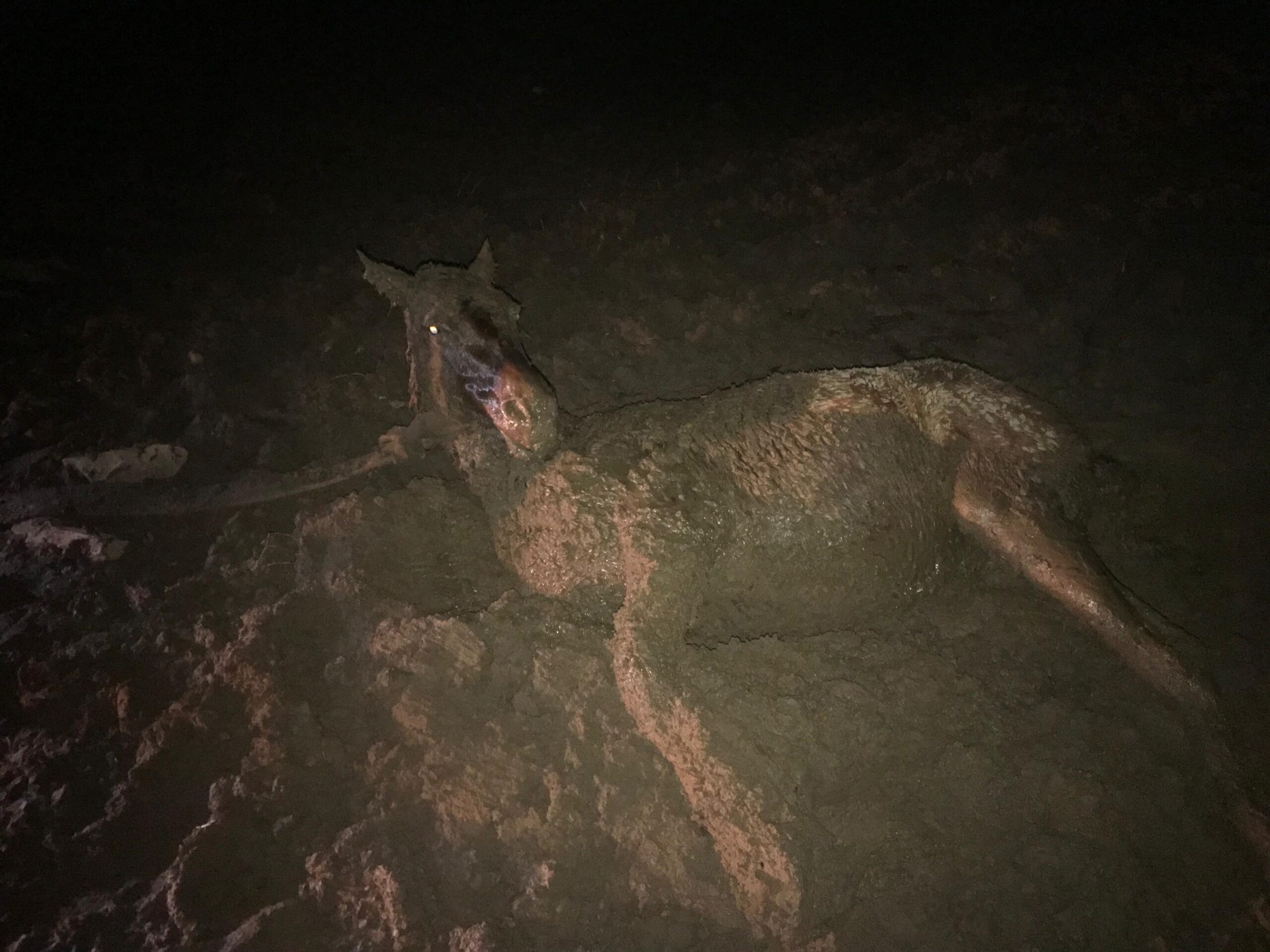 Bataklığa saplanan yılkı atı.