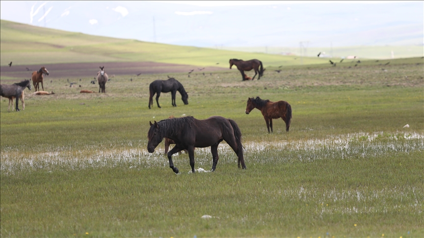 Kars'ın Digor ilçesinde sürü halinde dolaşan yılkı atları görüntülendi.