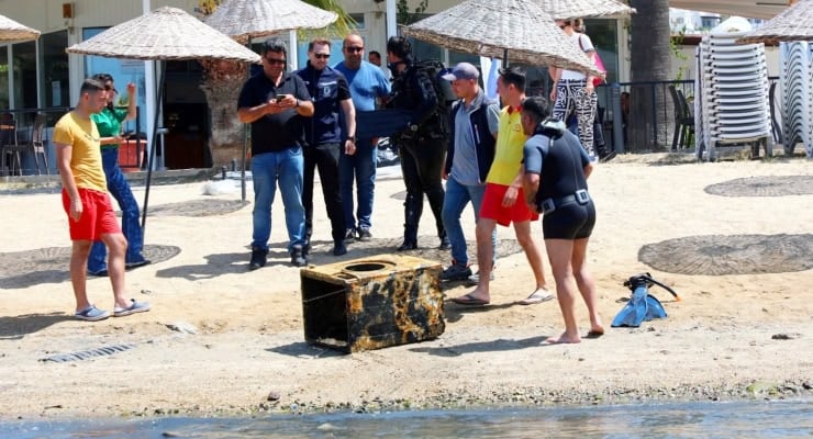 Muğla’nın ilçesi Bodrum’da dalgıçlar deniz dibi temizliği yaptı. Denizden çamaşır makinesi çıktı.