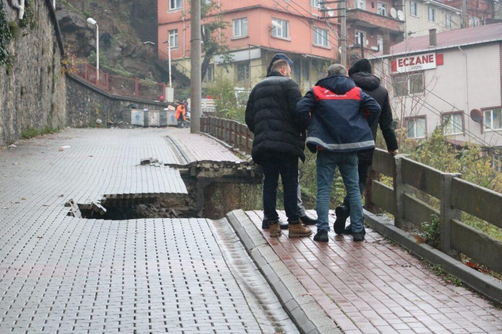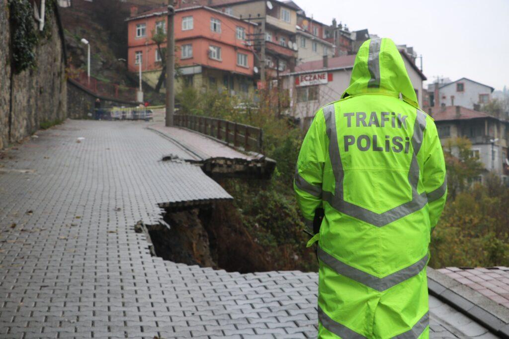 Polisler, yolu trafiğe kapatırken, belediye ekipleri incelemelerde bulundu. Bazı görevliler ise çöken yolun kenarında durup değerlendirme yaptı. Bariyer ve şeritle çevrilen yol, araç ve yaya trafiğine kapatıldı. Öte yandan heyelanın sürmesi durumunda riskli olan bölgedeki vatandaşlar yaşananları izlerken, görevliler tarafından uzaklaşmaları için uyarıldı.