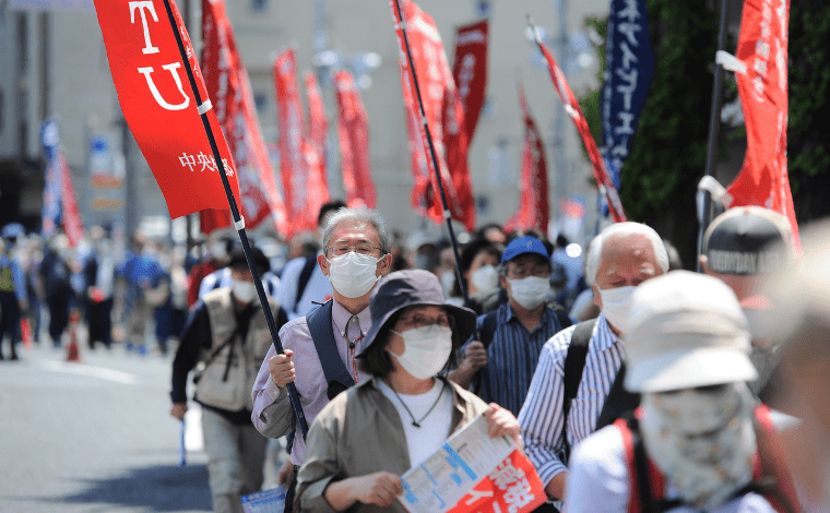Japonya’nın başkenti Tokyo’da binlerce işçi sendikası üyesi, muhalefet milletvekilleri ve akademisyenler, pandeminin yarattığı zararın telafi edilmesi için artırılan maliyetleri dengeleyebilmek için ücret artışı talep etti. Başbakan Kişida Fumio’nun savunma bütçesini iki katına çıkarma planını eleştiren Japonlar, paranın refah, sosyal güvenlik ve insanların günlük yaşamlarını iyileştirmek için harcanması gerektiğini savundu.