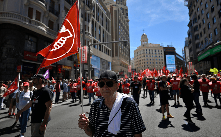 İspanya genelinde Avrupa standartlarına göre düşük olan maaşların enflasyona paralel olarak artmaması durumunda ‘toplumsal çatışma’ uyarısında bulunan sendikalar öncülüğünde 70’ten fazla yürüyüş düzenlendi. Öte yandan sendikalar çalışma günlerinin dörde indirilmesi yönündeki adımları övdü.