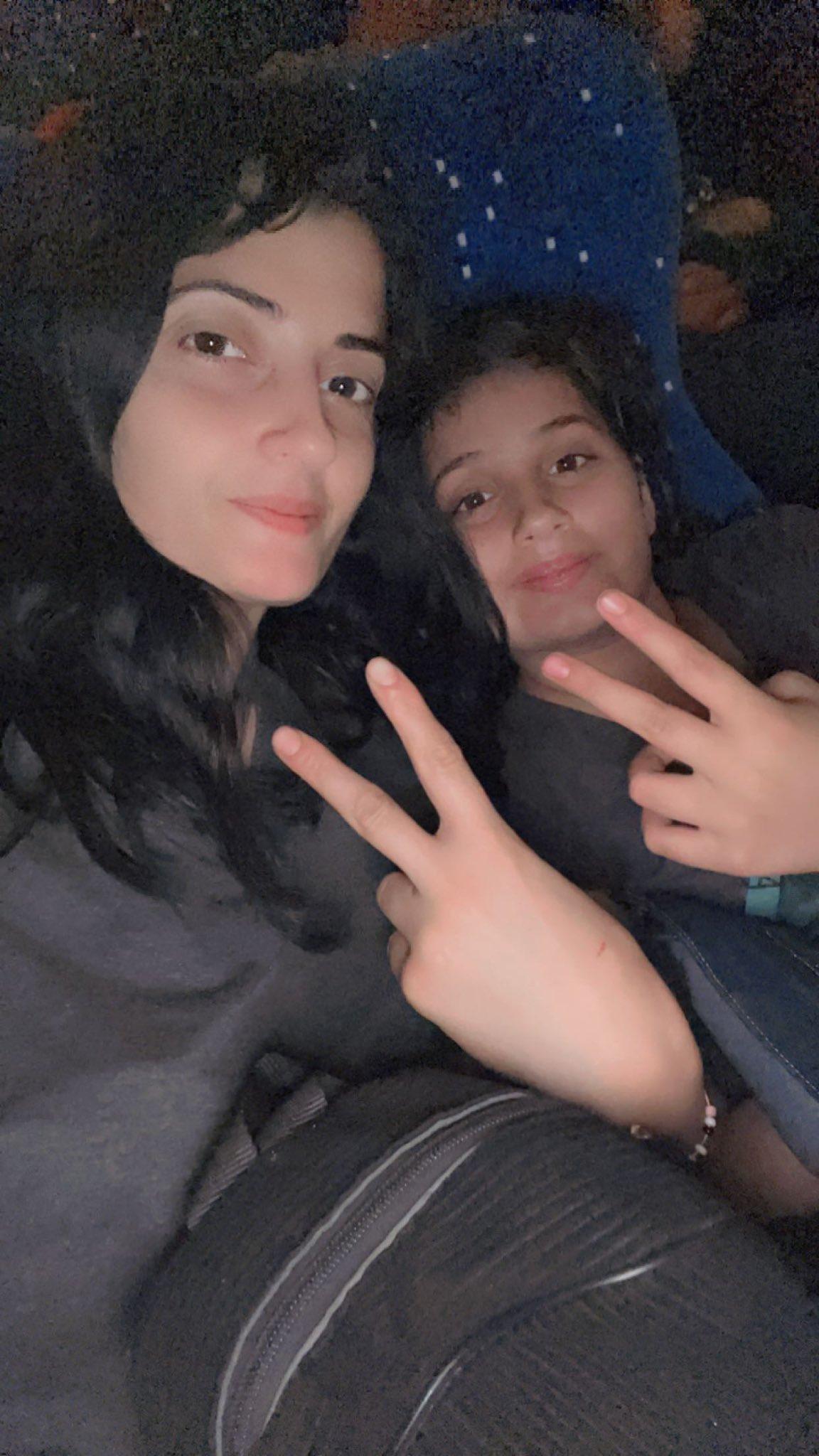 Gülay Yoğun, tahliye otobüsüne bindikten sonra sosyal medyadan yaptığı paylaşımda yukarıdaki fotoğrafla birlikte, “Tahliye başladı uzun ve yorucu bir yolculuk bizi bekliyor” diye yazdı. Fotoğraf: Gülay Yoğun/Twitter
