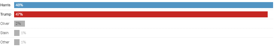 Bugün bir değil, iki anketimiz var ve ikisi de tuhaf bir şekilde birbirinin tam zıddı sonuçlara işaret ediyor. CNN’in 19-22 Eylül tarihlerinde yaptığı ilk anket Harris’in oyların yüzde 48’ini, Trump’ın da 47’sini aldığını gösteriyor. Oysa Quinnipiac Üniversitesi’nin aynı tarihlerde yaptığı bir diğer ankette Trump yüzde 48, Harris de 47 görünüyor. İki anketin ortak noktası ise her iki adayın da yarışı önde götürdüğüne dair herhangi bir işaretin olmaması. Yani her ikisinin de hâlâ öne geçmek için şansı var. Tek tek gidelim: