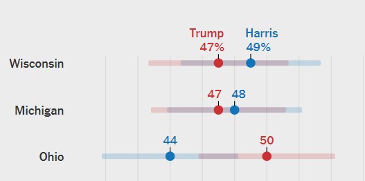 Bugün sizinle New York Times’ın Siena College’a yaptırdığı anketi ele alacağız. Karşımızda genel bir anketten ziyade salıncak eyaletler Michigan ve Wisconsin var. Michigan’da yarış neredeyse berabere gidiyor. Wisconsin’de de Trump Harris’in çok arkasında sayılmaz. Ohio başkan yarışında kritik eyaletlerden biri olarak görülmese de senato seçimleri için önemli olduğundan NYT orayı da dikkate almış ve sonuç beklendiği gibi Trump’ın altı puanlık üstünlüğünü gösteriyor. Oysa senato seçimleri açısından Demokrat Senatör Sherrod Brown’ın Cumhuriyetçi rakibi Bernie Moreno’nun dört puan önünde olduğunu görüyoruz.