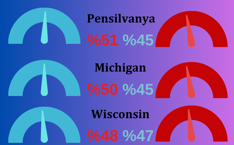 🧐Ankette biraz daha derine inecek olursak, Michigan ve Pensilvanya’daki seçmenlerin kimin ekonomiyi daha iyi yöneteceğine dair ikileme düştüğünü söylememiz mümkün. Zira her iki eyalette de bu soruya cevap aynı: Yüzde 50’ye 48 Trump’ın ekonomi için daha iyi seçenek olduğunu düşünüyor. Hatta Wisconsin’de Trump yüzde 51’e 47 gibi bir oranla az da olsa üstünlüğe sahip. Göçmen meselesinde de seçmenler Trump’ın yanında: Pensilvanya yüzde 50’ye 46, Wisconsin de yüzde 52’ye 45 oranla Trump’ı desteklerken Michigan burada yüzde 49’a 48 gibi bir oranla kararsız kalıyor. Ama kürtaj meselesinde de Harris’in yüzü gülüyor. Her üç eyalette de çoğunluk (en azı yüzde 53) kürtaj konusunda Harris’e daha çok güveniyor.