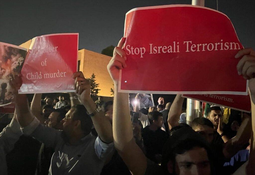 Ürdün’ün başkenti Amman’daki ABD Büyükelçiliği yakınında toplanan bir grup gösterici, ABD Dışişleri Bakanı Antony Blinken’in ziyaretini protesto etti. Göstericiler, ellerinde “İsrail terörünü durdurun”, “çocuk katili destekçileri” yazılı pankartlar taşıdılar. İsrail’in Gazze’ye yönelik saldırılarının başlangıcından bu yana Ürdün, ok sayıda protesto gösterisine sahne oluyor.