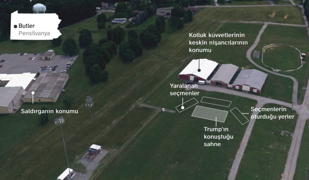 Saldırgan miting alanının dışındaydı, ancak Trump’ın konuşma yaptığı yerle arasındaki mesafe sadece 120-150 metre kadardı.