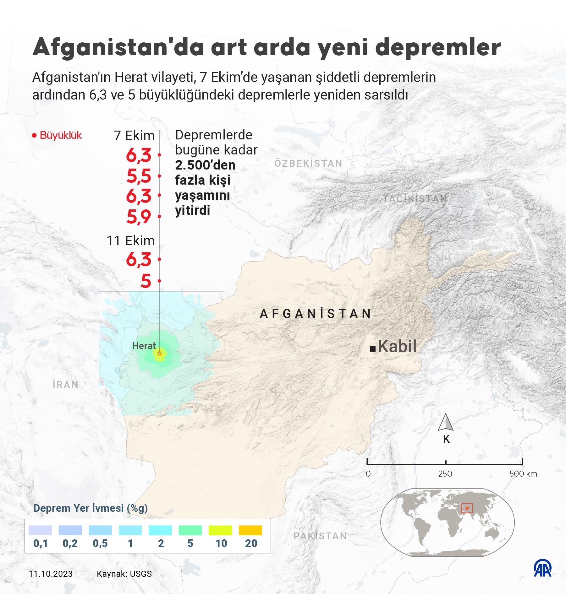 2 bin kişinin ölümüne neden olan cumartesi günkü depremin ardından Afganistan dün bir kez daha 6.3 ile sallandı. İlk büyük depremle aynı bölgede gerçekleşen deprem, daha öncesinde yıkılmayan evleri de yıktı. Halk ne yapacağını bilemez halde, dünya ise İsrail'e odaklanmış halde.