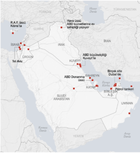 Basra Körfezi: İran füzeleri ve insansız hava aracı saldırıları, Irak, Kuveyt, Birleşik Arap Emirlikleri ve ABD’nin askeri üslerinin bulunduğu diğer ülkelerde patlamalara yol açtı. İran liderleri saldırıların ABD varlıklarını hedef aldığını söylese de, Dubai’nin uluslararası havaalanı, otelleri ve diğer sivil ve ekonomik altyapı da vuruldu.