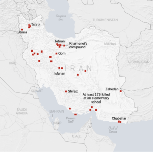 The New York Times’ın haberine göre Pazartesi günü Amerikan ve İsrail uçakları İran’daki hedefleri bombalarken, çatışmalar Lübnan’a da yayıldı; burada İran destekli milis gücü Hizbullah İsrail’e roketler fırlattı ve İsrail, Beyrut dışındaki milislerin mevzilerini bombaladı. Salı sabahı erken saatlerde İsrail ordusu, Lübnan’da tekrar saldırıya geçtiğini ve başkent Beyrut’taki Hizbullah komuta merkezlerini ve silah depolarını hedef aldığını açıkladı.