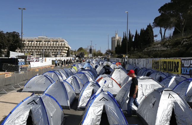 Knesset önündeki protesto çadırları. Fotoğraf: Shutterstock