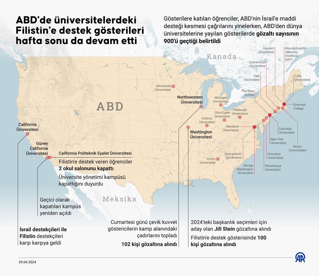 Birçok üniversitede eylemler sürüyor, ancak iki haftalık bir süreç sonunda polis operasyonu yapılan Columbia Üniversitesi ve California Üniversitesi’ndeki eylemcilere saldıran İsrail yanlıları için gözlerimizi Amerika Birleşik Devletleri’ne (ABD) çevireceğiz.