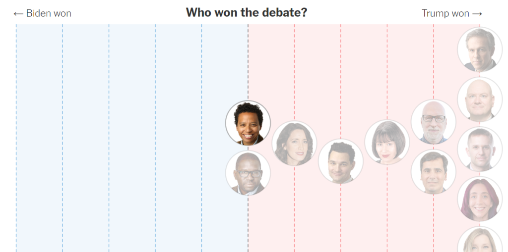 NYT Opinion, 12 köşe yazarından başkanlık tartışmasını analiz etmelerini ve dikkatlerini çeken şeyleri özetlemelerini istedi.