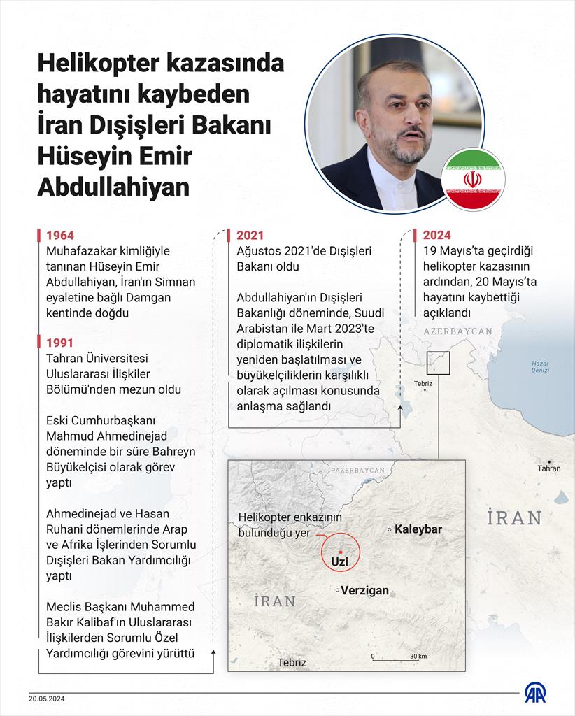 Reisi’nin hayatını kaybettiğinin kesinleşmesinin ardından Birinci Yardımcısı Muhammed Muhbir, geçici cumhurbaşkanı olarak görevlendirilirken, Dışişleri Bakan Yardımcısı olan Ali Bakıri Keni, Abdullahiyan’ın yerine geçici Dışişleri Bakanı olarak atandı.