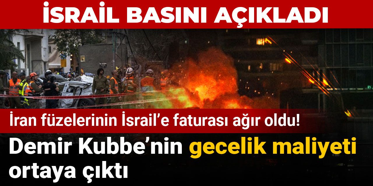 İran, söz konusu saldırıya karşılık olarak balistik ve hipersonik füzelerle İsrail’i vurmaya başlarken füzelerin bir kısmını havada imha eden İsrail hava savunma sistemi, İran’dan gelen onlarca füzeye de engel olamadı. İran’ın attığı füzelerin İsrail’e faturası ağır olurken İsrail basını, Demir Kubbe savunma sisteminin bir gecelik maliyetini duyurdu. İsrail basını saldırılara karşı düzenlenen hava savunma operasyonlarının maliyetinin yaklaşık 287 milyon doları bulduğunu açıkladı. İsrail basınında yer alan haberlerde, geçen gece İran’dan atılan 10 ila 12 balistik füzeye müdahalenin maliyetinin de 287 milyon doları bulduğuna işaret edildi.
