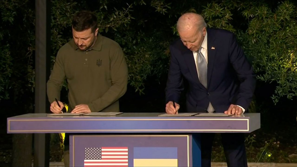Biden, “Amacımız Ukrayna’nın savunma ve caydırıcılık kabiliyetini uzun vadede güçlendirmek. Ukrayna’da kalıcı barış ancak Kiev’in kendini savunma ve olası saldırılara karşı koyma kabiliyeti ile mümkün olabilir” dedi. Anlaşma, ABD’nin 10 yıl boyunca Ukrayna ordusuna eğitim vermeye devam etme, silah ve askeri teçhizat üretiminde daha fazla işbirliği yapma, askeri yardımda bulunma ve daha fazla istihbarat paylaşma gibi taahhütlerin altına sokması bekleniyor.
