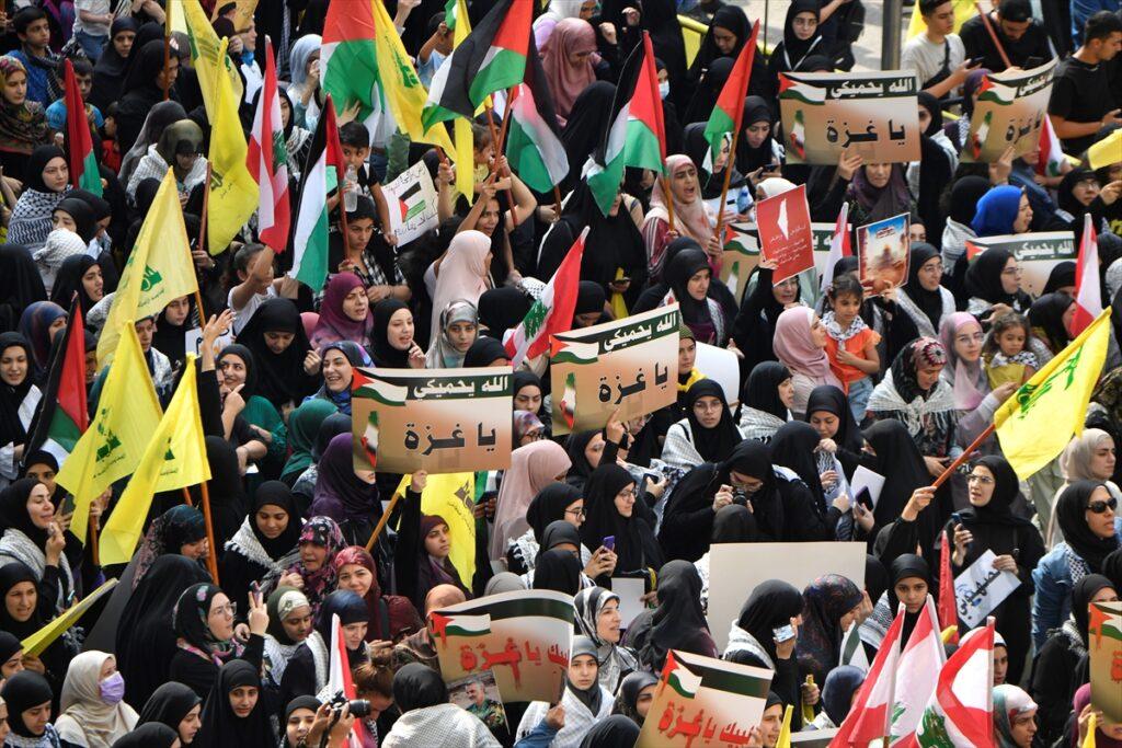 Başkent Beyrut’ta cuma günü bir araya gelen binlerce Lübnanlı, ellerinde Filistin bayrağı taşıyarak İsrail karşıtı sloganlar attı.