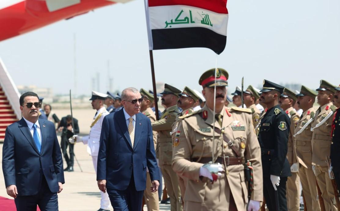 Ziyaret Bağdat ve Erbil ayağı olmak üzere iki adımdan oluştu. Erdoğan ilk olarak Bağdat’ta Başbakan Muhammed Şiya Sudani tarafından karşılandı. Erdoğan yanında Fidan, Güler başta olmak üzere İçişleri Bakanı Ali Yerlikaya, Ticaret Bakanı Ömer Bolat, Ulaştırma ve Altyapı Bakanı Abdulkadir Uraloğlu, Tarım ve Orman Bakanı İbrahim Yumaklı, Enerji ve Tabii Kaynaklar Bakanı Alparslan Bayraktar, Sanayi ve Teknoloji Bakanı Mehmet Fatih Kacır, Cumhurbaşkanlığı İletişim Başkanı Fahrettin Altun ile Cumhurbaşkanı Dış Politika ve Güvenlik Başdanışmanı Büyükelçi Akif Çağatay Kılıç’ı da götürdü. Erdoğan Bağdat’ın ardından Irak Kürdistan Özerk Yönetiminin başkenti Erbil’i de ziyaret etti.