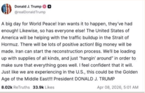 — The White House (@WhiteHouse) April 8, 2026