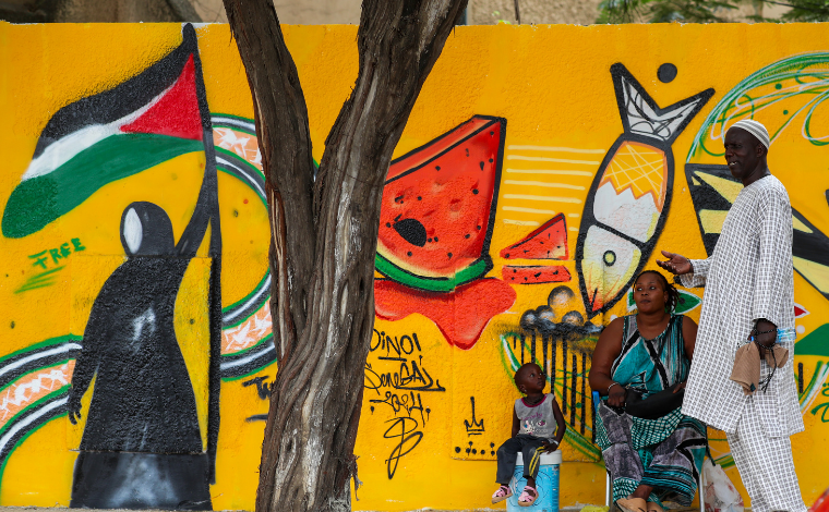 Senegal’de grafiti sanatçıları, başkent Dakar sokaklarında duvarlara çizdikleri grafitilerle, İsrail saldırıları altındaki Filistin ve Lübnan’a destek mesajı vererek konuya ilişkin farkındalık oluşturuyor.