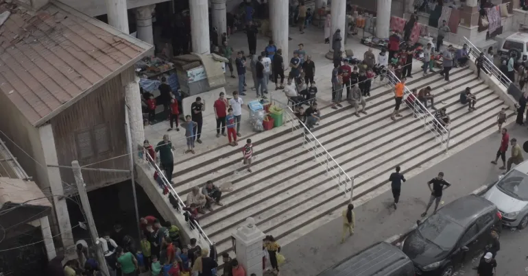 Kudüs Hastanesi’nin havadan çekilen görüntülerinde sivillerin hastanenin avlusunda toplandığı görülüyor. El Cezire muhabiri El Sayed, Kudüs Hastanesi’nin yakınlarında oturduğunu söyleyerek bölgedeki durumu şöyle anlatıyor: