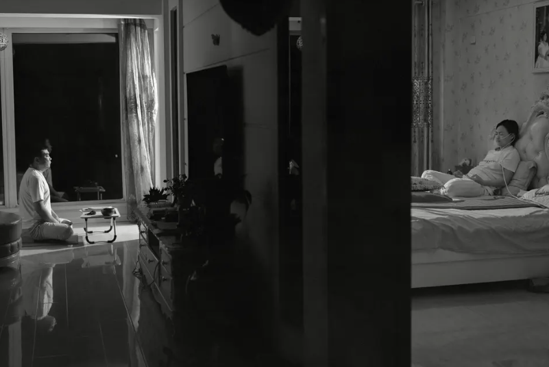 Yarışmada sadece toplumsal acılar değil, bireysel acılara da yer verildi. Bunlardan biri de Çin’in kuzeyinde yaşayan bir çiftti. Foto muhabir Wang Naigong aşağıdaki fotoğrafla kansere yakalandıktan sonra hayatı daha iyi anlamaya başlayan ve son yıllarını daha çok şükrederek geçiren üç çocuk annesi Jieur’a odaklanmak istemiş. Jiuer ameliyatından önce Naigong’u ailesiyle beraber fotoğraflarını çekmesi için evine davet etmiş. Jieur ve kocası her gece uyumadan önce birlikte ilahiler söylermiş. Ne var ki fotoğrafın çekildiği gece Jieur kendini iyi hissetmediği için eşine yataktan katılmış.