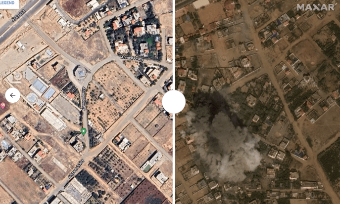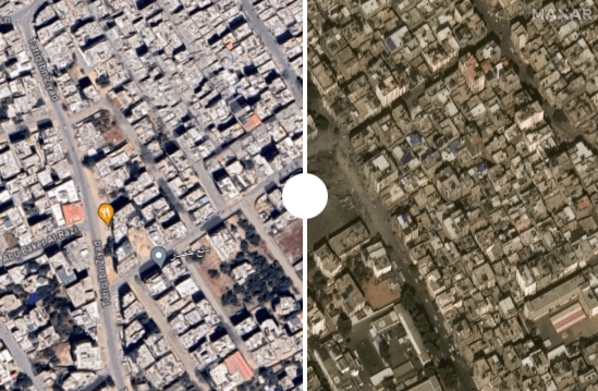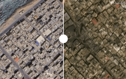 Son olarak Gazze’de İsrail’in hava saldırıları öncesi durumla sonraki durumun uydu görüntülerine göz atalım. Fark çok çarpıcı:
