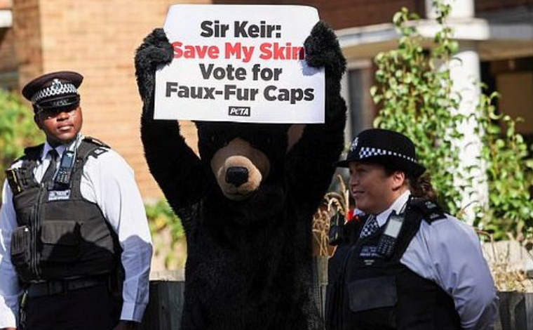 Anketlerde açık ara farkla seçileceği görünen İşçi Partisinin lideri Keir Starmer da eşi Victoria Starmer’la birlikte yerel saatle 09.30’da başkent Londra’daki Kentish Town bölgesindeki oy kullanma merkezine gitti. Kürk ticaretinin sona ermesini isteyen bir hayvan hakları aktivisti burada ayı kostümüyle Starmer’ın gelişini bekledi. İşçi Partililer de ayı kostümlü aktivistin önüne geçip Starmer’la görüntü vermesini engellemeye çalıştı.
