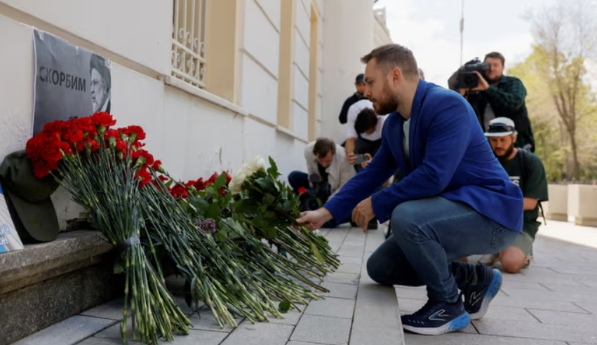 Bu arada Rusya’da İran büyükelçiliği önüne Reisi fotoğrafının önüne çiçekler bırakıldı.