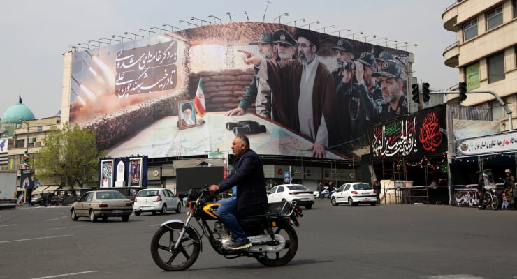 Tahran’da Mücteba Hamaney ve İran Devrim Muhafızları Ordusu’nun (DMO) komutanlarının afişi. Fotoğraflar: AA