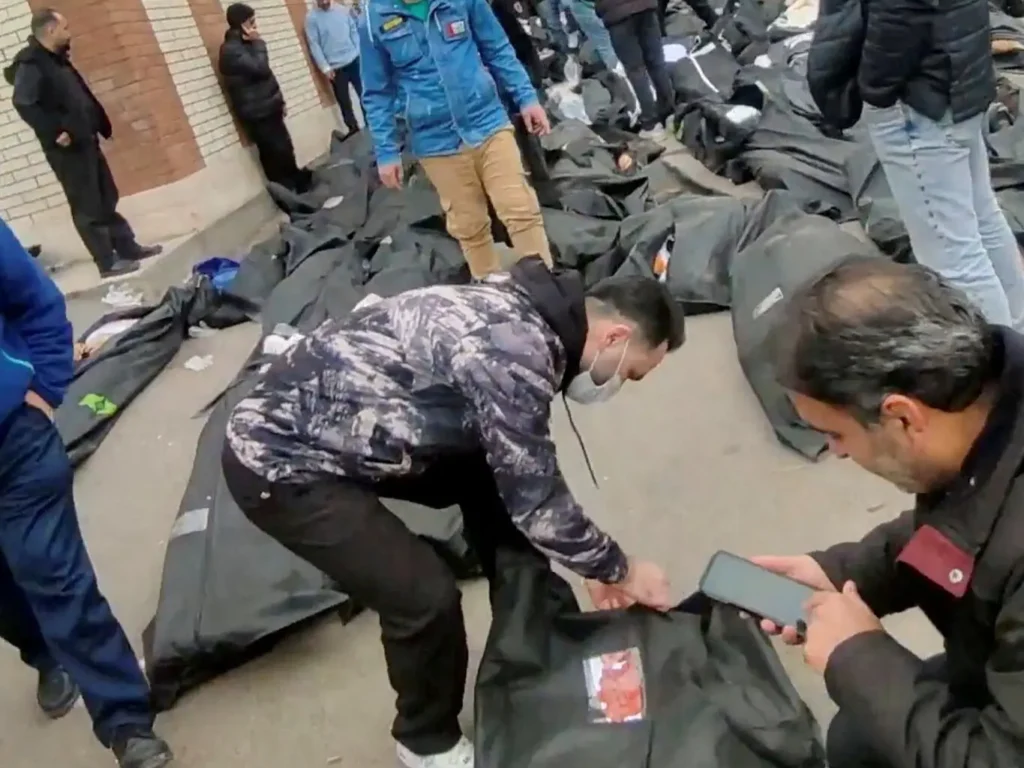 Geçen hafta cuma gününden başlayarak bütün hafta sonu boyunca Devrim Muhafızlarına bağlı silahlı milisler pek çok kentte halkın üstüne doğrudan gerçek mermilerle ateş açtı. Bunun sonucunda ortaya inanılmaz bazı görüntüler çıktı. Morgların önü ceset torbalarıyla doldu.